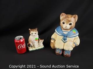 Lot #0141: Vtg. Milton Ceramic Cat Cookie Jar & Japan Figure