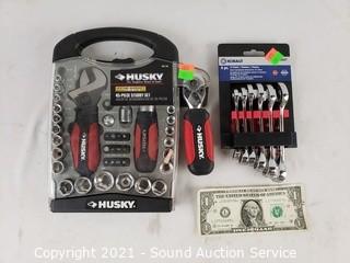 Lot #0182: Husky 45pc & Kobalt 6pc Stubby Wrench & Tool Sets
