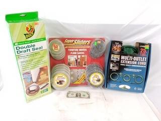 Lot #0302: Multi-Outlet Ext Cord, Super Sliders & Draft Seals