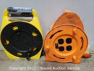 Lot #0402: Pair of 25ft Multi-Outlet Extension Cord Reels
