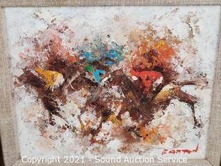 Lot #0010: Signed Original Barton "Horse Race" Painting