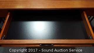 Single drawer with drop front for keyboard. Approx. 30" tall, 60" wide & 28" deep.