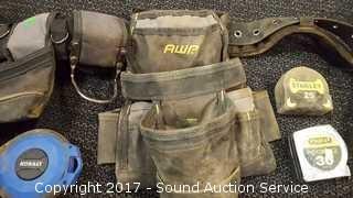 Lot #0147: AWP Tool Belt with Kobalt & Stanley Tape Measures