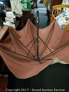 Lot #0089: Beige Hand Crank Patio Table Umbrella