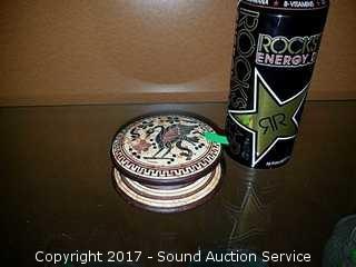Looks like it was made in Greece. Hand painted. Approx. 2" x 3.5" diameter.