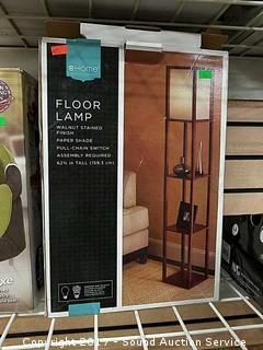 Lot #0032: Paper Shade Walnut Finish Floor Lamp NIB
