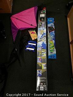 Purple Comet & 4.5'Ft. Wing span, Colormax 25" wide, 3D P-51 50" wing span kite.