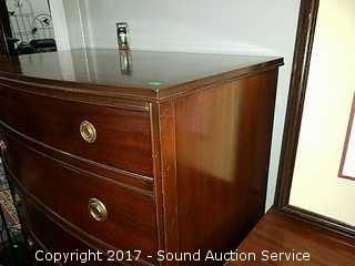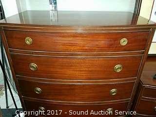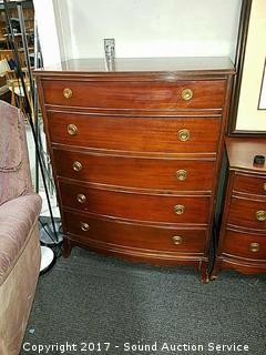 Lot #0115: Vtg. Mahogany Bowed Front 5 Drawer Highboy