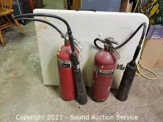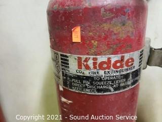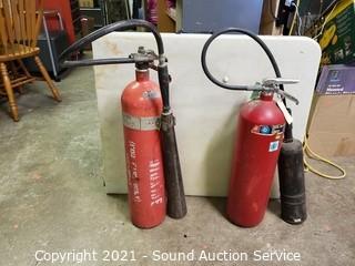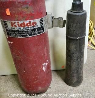 Lot Details: Military CO2, Kidde & C-O-Two Extinguishers. 25" to 29" x 7". Unknown levels, heavy feel like they have contents.