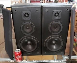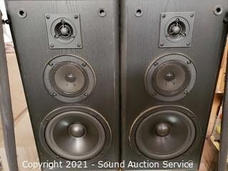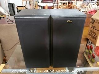 Lot Details: Both work. KLH emblem on one grill has come off. 21" H x 10.5" W x 12" D. Various scuffs on the finish.