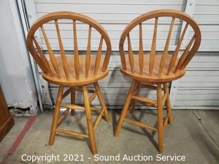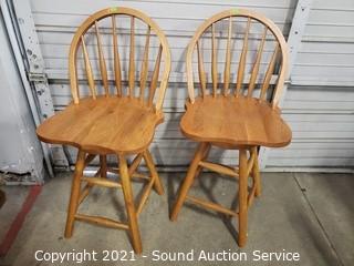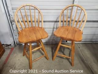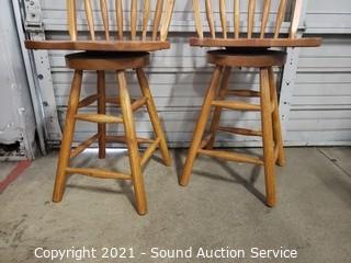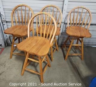 Lot #0002: 4 Swivel Contoured Seat Counter Height Oak Stools