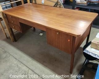 Lot #0178: 5-Drawer Teak Finish Desk