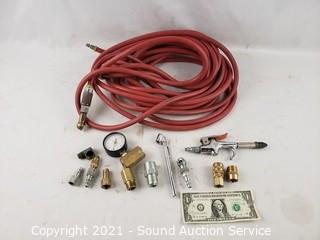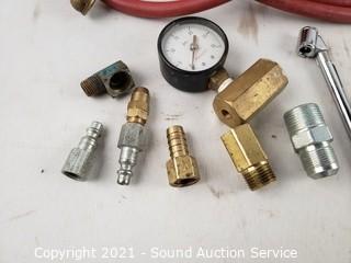 Lot #0213: Air Hose & Various Fittings, Nozzle, Gauge