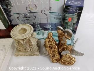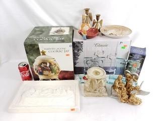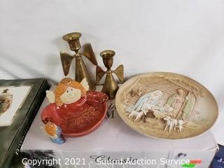 Lot Details: Nativity Cookie Jar, Cherub candleholders & much more.