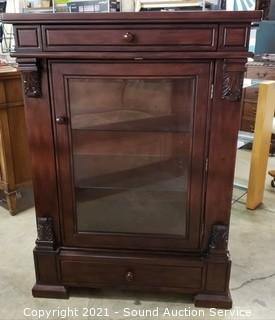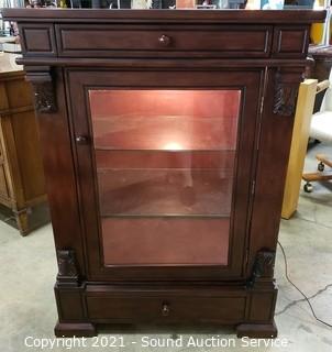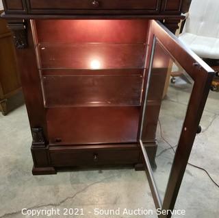 Lot #0037: Dark Stained 2-Tier Lighted Curio Cabinet