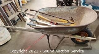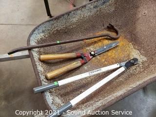 Lot #0256: Wheelbarrow w/Crowbar, Trimmers, Loppers