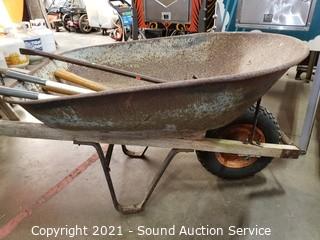 Lot Details: Wheelbarrow is pretty rusty, inflatable tire, holding air.