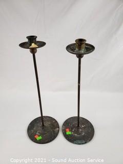 Lot #0087: 2 Pairs Vintage Metal Candle Holders