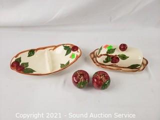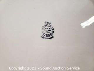 Lot Details: 12 Dinner plates, 12 snack plates, 8 bowls, 8 lunch plates, butter dish, salt , pepper, 8" & 10" serving bowls, large gravy boat, soup tureen. Don't see any issues.
