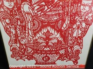 Lot #0143: Framed Handmade Oriental Paper Cutting Artwork
