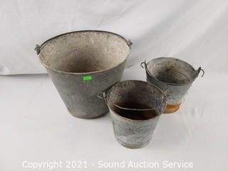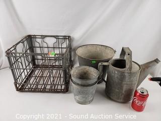 Lot #0286: Galvanized Steel Crate, Pails, Watering Can