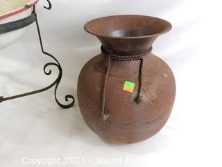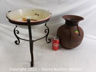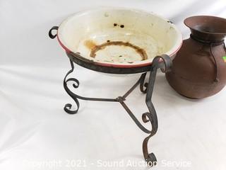 Lot #0218: Rustic Steel Spittoon & Bowl w/Stand