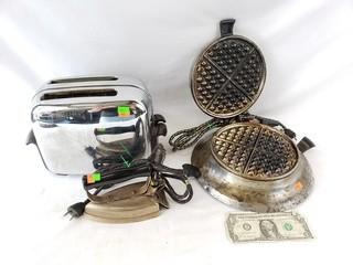 Lot #0301: Vtg. Toaster, Waffle & Steam Irons