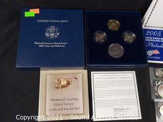Lot Details: Westward Journey Nickel Series includes 2005 coins, medal & Sacagawea coin.