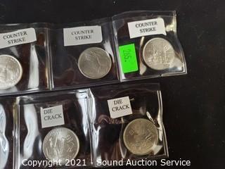 Lot Details: 2001 North Carolina Grease Die Quarter; 2005 Alabama Color Tone Quarter; (3) 2000 Massachusetts Die Crack Quarters; (4) 2000-2003 Counter Strike Quarters.