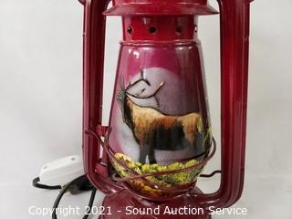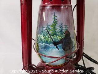 Lot #0015: Hand Painted Barn Lantern Elec. Lamp