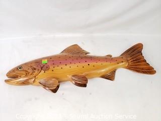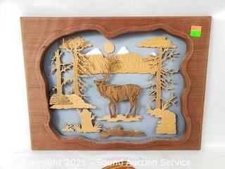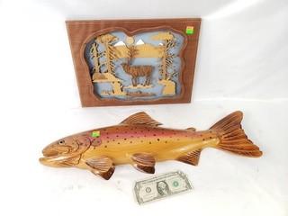 Lot Details: Sculpted Salmon by Ray Holmquist, 25" x 9". And Elk Silhouette by Dan's Crafts 11.5" x 15".