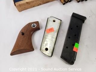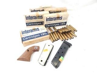 Lot #0043: Pistol Grips, 9mm? Magazine & 7.5mm Casings