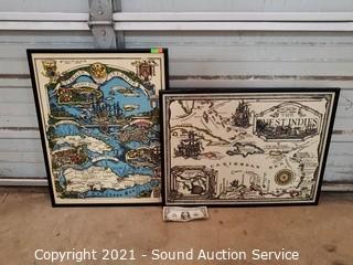 Lot #0237: Vtg. Virgin Island & West Indies Map Wall Decor