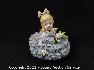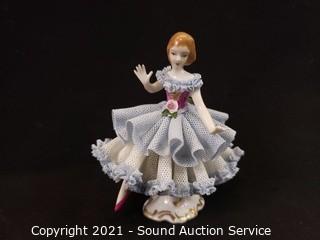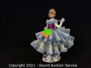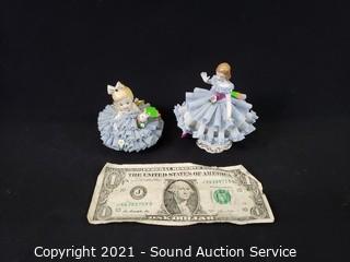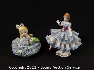 Lot #0316: 2 Vtg Ornate Dresden Porcelain Figures