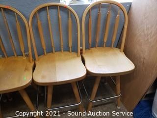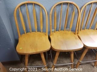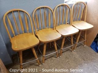 Lot #0341: 4 Counter Height Natural Wood Swivel Stools