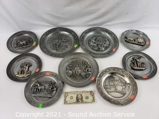 Lot #0213: 9pc Pewter Plate Wall Decor