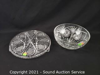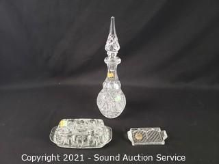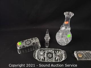 Lot Details: Decanter, Crystal d'Arques highball glass, brandy snifters, butter dish, cake plate, center bowl.