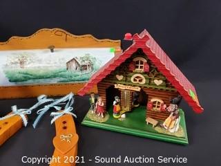 401 lot including; Incredible Lancini Imperial Clock & Candelabras, Vtg. German? Kitchen Cabinet Shrunk, Lambskin Rugs, Wrought Iron Benches, Beautiful Vtg. Genuine Capodimonte porcelain Sculptures, Vtg. Sewing Machines, Bavarian & Other Fine China Dish Sets, Petosa Full Size Accordion w/Case, Vtg. Steamer Trunk w/Key, 47pc S.Kirk & Son Sterling Flatware Set w/Case, Vintners Counter Top Wine Bottle Opener, Beautiful Gold Gilded Mirrors, Exercise machines, Ornate Multi-Wood Inlay 2-Tier Tea/Wine Cart, Curio Cabinets, Fine Porcelain Sculptures, Stunning Art Glass & Crystal Decor, Nice Men's & Women's Clothing (Jacket, Blazers, Suits), Vtg. Dressers, Patio Set, Nice Baroque Style Clocks, German Cuckoo Clocks & So many more great lots!!!