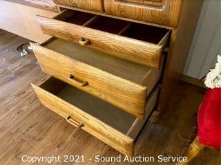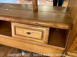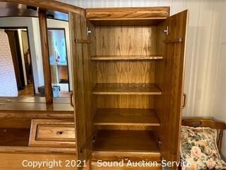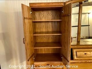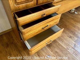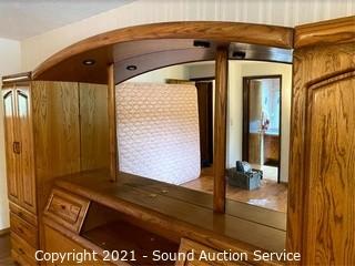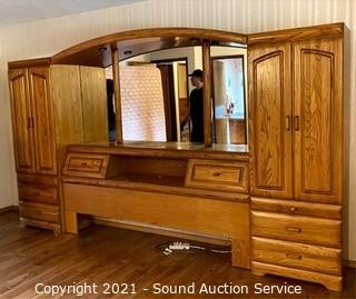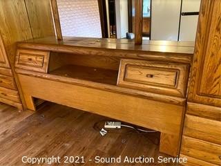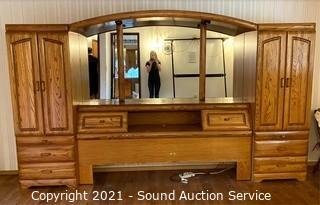 Lot #0377: Modern Oak Finish King Headboard Unit