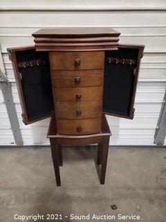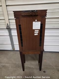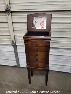 401 lot including; Incredible Lancini Imperial Clock & Candelabras, Vtg. German? Kitchen Cabinet Shrunk, Lambskin Rugs, Wrought Iron Benches, Beautiful Vtg. Genuine Capodimonte porcelain Sculptures, Vtg. Sewing Machines, Bavarian & Other Fine China Dish Sets, Petosa Full Size Accordion w/Case, Vtg. Steamer Trunk w/Key, 47pc S.Kirk & Son Sterling Flatware Set w/Case, Vintners Counter Top Wine Bottle Opener, Beautiful Gold Gilded Mirrors, Exercise machines, Ornate Multi-Wood Inlay 2-Tier Tea/Wine Cart, Curio Cabinets, Fine Porcelain Sculptures, Stunning Art Glass & Crystal Decor, Nice Men's & Women's Clothing (Jacket, Blazers, Suits), Vtg. Dressers, Patio Set, Nice Baroque Style Clocks, German Cuckoo Clocks & So many more great lots!!!