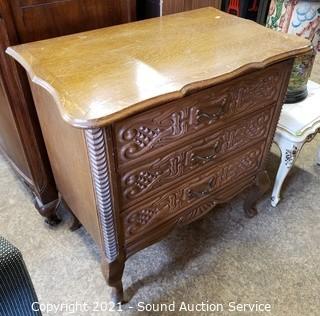 Lot #0398: Ornate Cabriole Leg 3-Drawer Nightstand