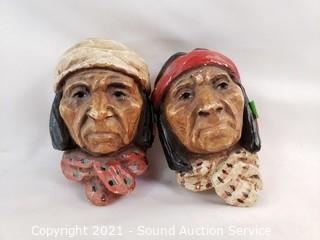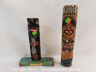 Lot #0328: 2 Native Carved Wood Totems & Ceramic Busts