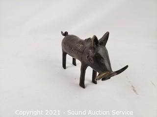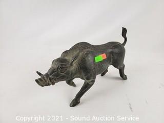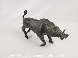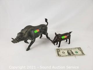 Lot #0195: 2 Solid Cast Metal Warthog Sculptures