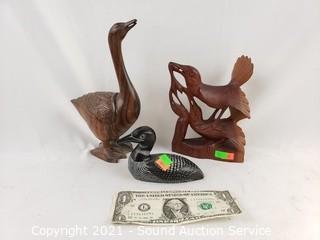 Lot #0162: 3 Ornate Carved Wood Bird Sculptures