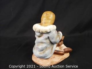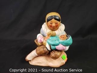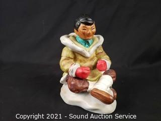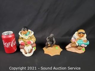 Lot #0190: 3pc Alaskan Ceramic & Bronze Figures