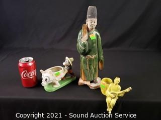 401 lots including; Unique Carved Teak Table w/Fringe Accents, Ornate Najarian Furniture Sofa's, Hutch, Tables, Dining Table, Some Nice Vintage & Antique Original Artwork/Paintings (Some from 18th, 19th Century), Artifact Pottery Pieces, Various Tribal & African Carved Wood Sculptures, Bronze Hindu & Other Sculptures, Signed Art Pottery Pieces, Fine Porcelain Sculptures, Vtg. Bang Olufsen Denmark Speakers, Turntable Receiver, Tribal Ceremonial Jewelry, Accessories, Handcrafted Silver Cuff Bracelet, Framed Imported Silver Bangles & Necklace & So Much More!!!