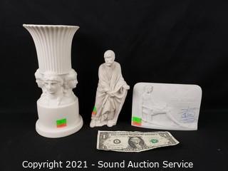 Lot #0090: 3pc Signed Porcelain Bisque Sculptures