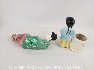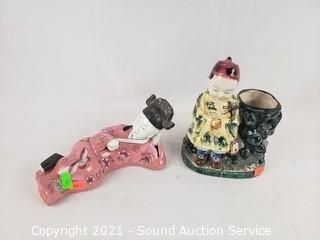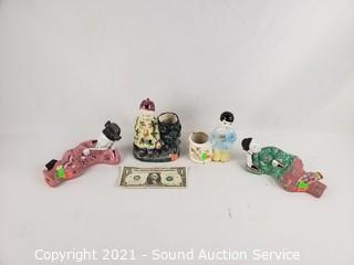 401 lots including; Unique Carved Teak Table w/Fringe Accents, Ornate Najarian Furniture Sofa's, Hutch, Tables, Dining Table, Some Nice Vintage & Antique Original Artwork/Paintings (Some from 18th, 19th Century), Artifact Pottery Pieces, Various Tribal & African Carved Wood Sculptures, Bronze Hindu & Other Sculptures, Signed Art Pottery Pieces, Fine Porcelain Sculptures, Vtg. Bang Olufsen Denmark Speakers, Turntable Receiver, Tribal Ceremonial Jewelry, Accessories, Handcrafted Silver Cuff Bracelet, Framed Imported Silver Bangles & Necklace & So Much More!!!
