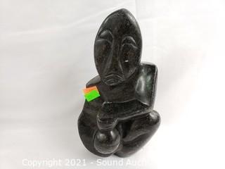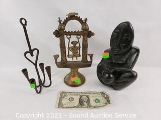 Lot #0259: African Stone Sculpture, Brass Decor & Metal Hook