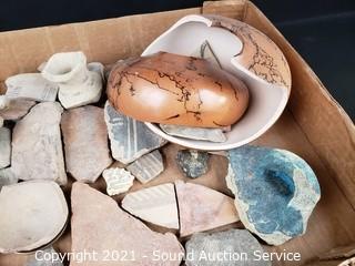Lot Details: Unknown age, most look very old. Also contains pieces of a broken horse hair vase.